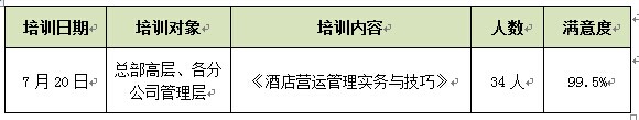 为了切实提高管理人员的酒店运营管理能力与技巧,打造一支高素质,高效能的员工队伍,深圳市佳兆业酒店管理有限公司特委托深圳市优策企业管理顾问有限公司,针对总部高层、各分公司管理层进行系统的培训。