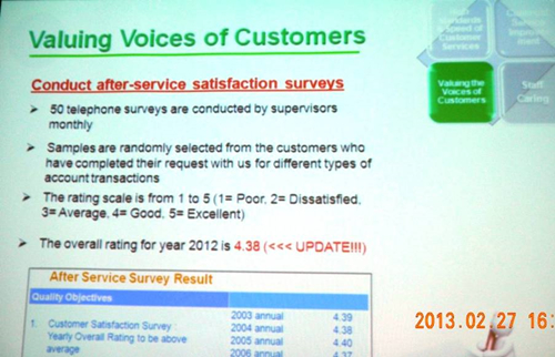 客户中心主管每个月随机抽取50个客户样本,主动致电客户进行服务后的沟通交流,在客户满意度调查上聆听客户的意见。