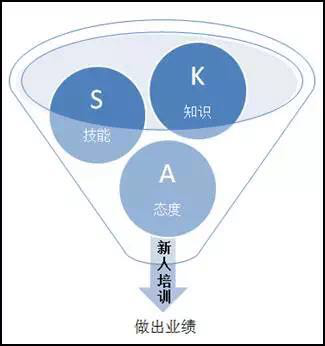顺应这个设计思路,制订培训目标时,我们可根据KSA模型,按照态度、知识、能力从三个层级,从素养、认知、技能三个维度设置培训目标和课程,助力新人尽快做出业绩。