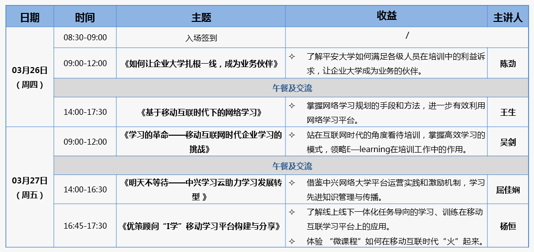 09:25-10:25 | 学习变革——混合式学习的3.0时代 | 杨谨忠 | |